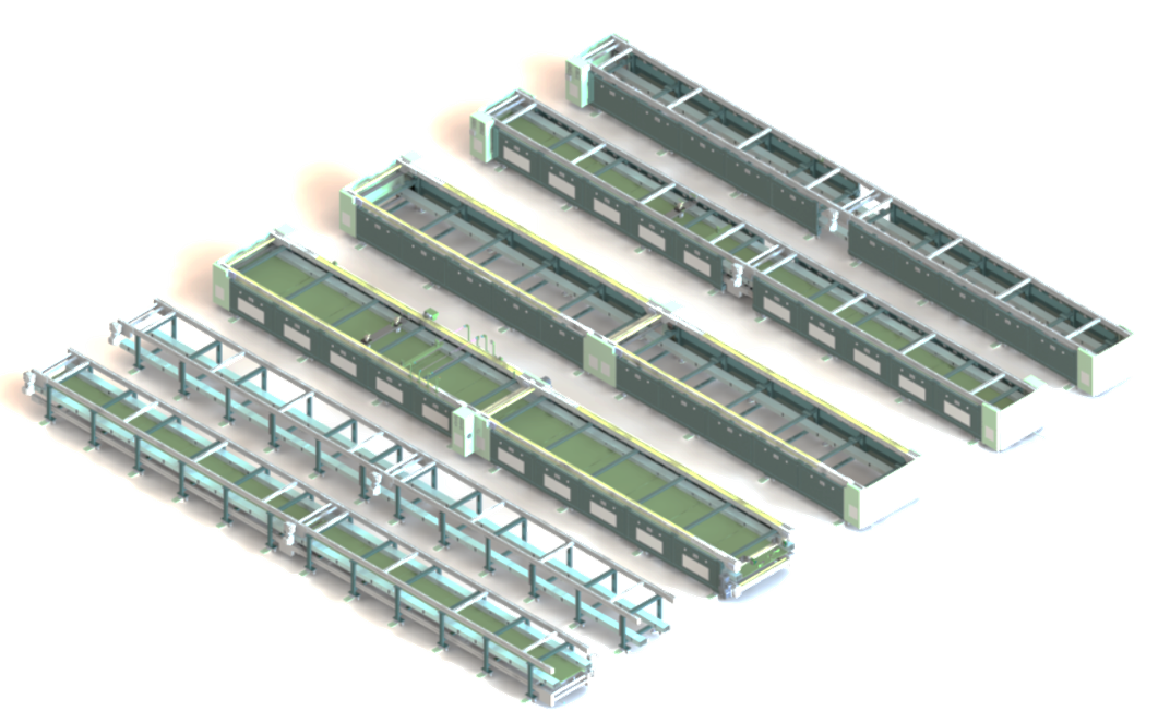 産品名稱:輸送系統 産品種類: 單倍速輸送鏈、2.5倍速輸送鏈、3倍速輸送鏈、滾筒線輸送線、摩擦輥道線、柔性闆鏈線、皮帶輸送線等; 适用範圍:适用于動力電池、儲能、光伏、3C等多個前沿行業 輸送速度:5-20m/min 負載:最大負載500Kg/m 配套:頂升定位,頂升橫移,提升機、轉台等